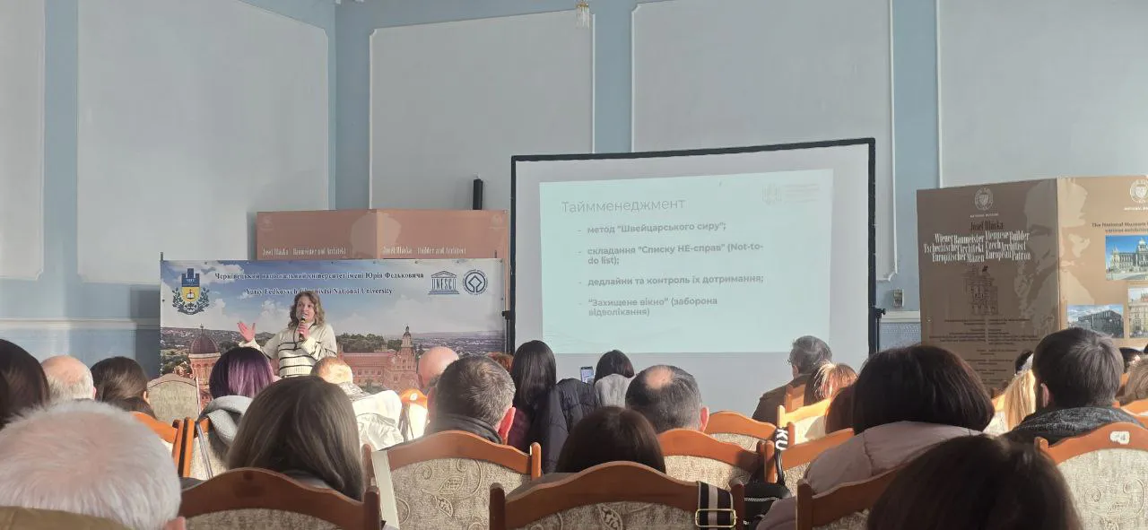 Особливо цінним став модуль «Викладач як ментор: стратегії партнерської взаємодії та мотивації студентів у парадигмі HR-менеджменту», який провела завідувачка кафедри бізнесу та управління персоналом Любов ВОДЯНКА. Зміст лекції був орієнтований на практичні аспекти побудови менторських відносин зі здобувачами освіти, техніки мотивації та формування проектних команд із студентських груп.