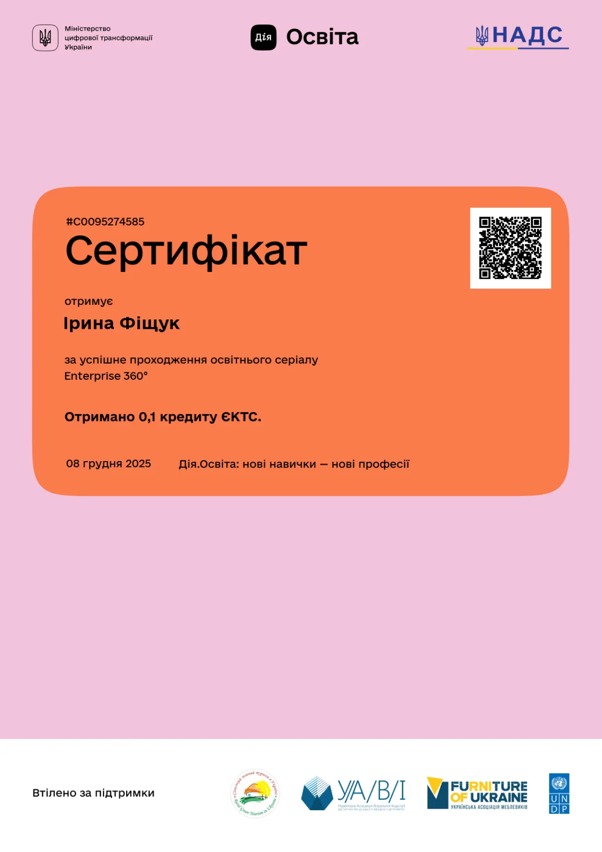 Порядок визнання у Чернівецькому національному університеті імені Юрія Федьковича результатів навчання, здобутих шляхом неформальної та/або інформальної освіти дає можливості студентам використовувати різні інструменти та формати, які будуть визнані як результати вивчення окремих тем або окремих освітніх компонентів. В процесі вивчення дисципліни «Менеджмент малого і середнього бізнесу» студенти ОП «Менеджмент організацій і адміністрування» використовували різні інструменти неформальної освіти – онлайн-курси, вебінари, бізнес-симуляції, що дозволило досягати як навчальних (зарахування результатів за окремими темами курсу), так і професійних (опановування актуальних управлінських практик, які швидко змінюються під впливом цифровізації, глобалізації та трансформації ринків) цілей. Така практика забезпечує гнучкість освітнього процесу та його відповідність потребам ринку праці.